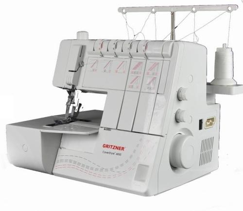 Sehen Sie sich mal den Saum Ihres Sweatshirts an. Dort sehen Sie die typische Covernaht mit der Doppelnadelansicht auf der Oberseite und der perfekten Versäuberung auf der Unterseite. Diese Naht können Sie in einem Arbeitsgang mit der Gritzner Coverstyle 4850 nähen.