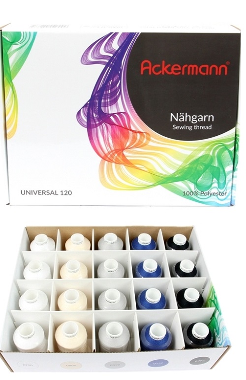 (Overlockmaschine, 20-teilige Ackermann Garnbox, LED-Lampe, Overlockbuch, 5 Bonusfüße, Abfallbehälter, Differentialtransport, 2-4 Fäden, Greifereinfädelhilfe, 15 Nähprogramme, Freiarm, eingebauter Rollsaum, bis zu 1300 Stiche pro Minute)